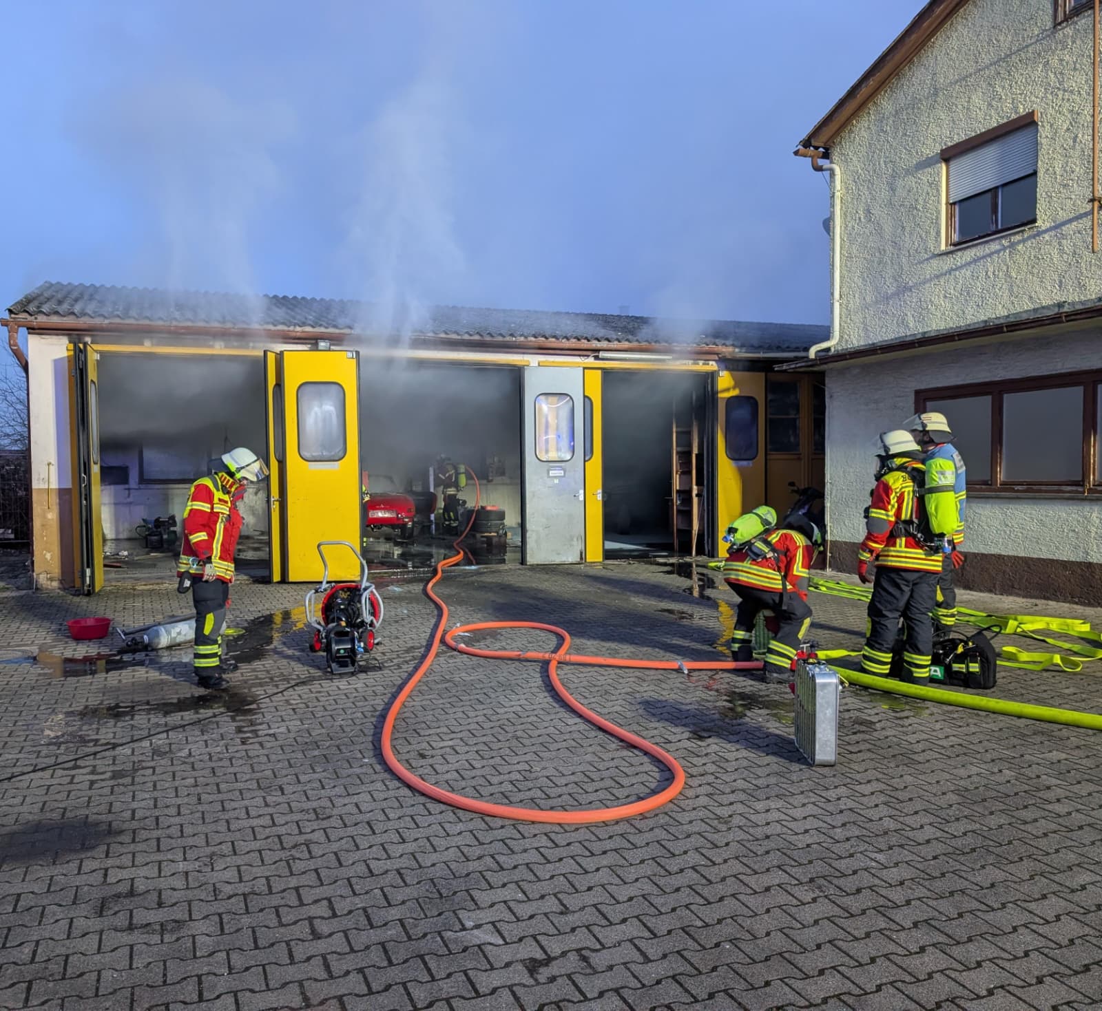 Aufgrund starker Rauchentwicklung wurde die Feuerwehr Bönnigheim gegen 17 Uhr in die Meimsheimer Straße alarmiert. Vor Ort brannte ein PKW in einer Werkstatt. Das Feuer konnte durch einen Trupp unter Atemschutz und mit einem C-Rohr schnell unter Kontrolle gebracht werden. Das Fahrzeug wurde von einem weiteren Trupp mit Hilfe einer Wärmebildkamera auf eventuelle Glutnester abgesucht. Im Anschluss an die Löscharbeiten wurde die Werkstatt belüftet und an die Polizei übergeben.