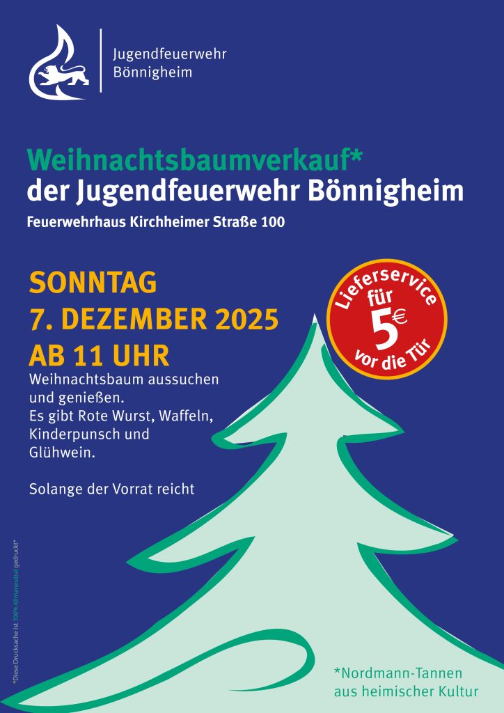 Auch dieses Jahr findet am 2. Adventssonntag der Weihnachtsbaumverkauf der Jugendfeuerwehr Bönnigheim statt.